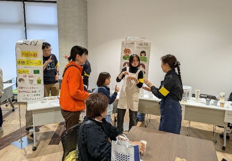 バリアフリー体験として、目隠しをして、白杖(はくじょう)を使って歩くコーナーや、手話で飲み物を注文するコーナーなどが人気でした。車椅子の体験コーナーを体験した方からは、少しの段差で止まってしまったり、動かすのが大変だったとの感想がありました。