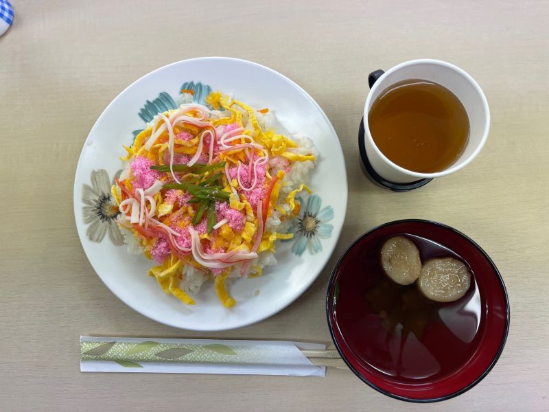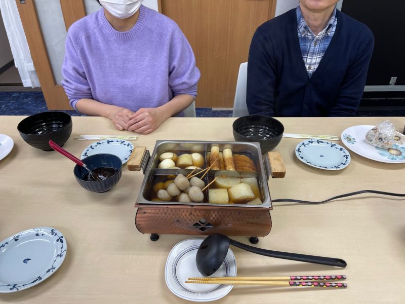 「本格おでん」に「ちらし寿司」、「ビスケットのチョコケーキ」を作って食べました。作るのももちろん利用者さんです。大根の面取りや絹さやの筋取りに四苦八苦しながら頑張りました!これからも美味しくて楽しい飲食プログラムをたくさん行う予定です。